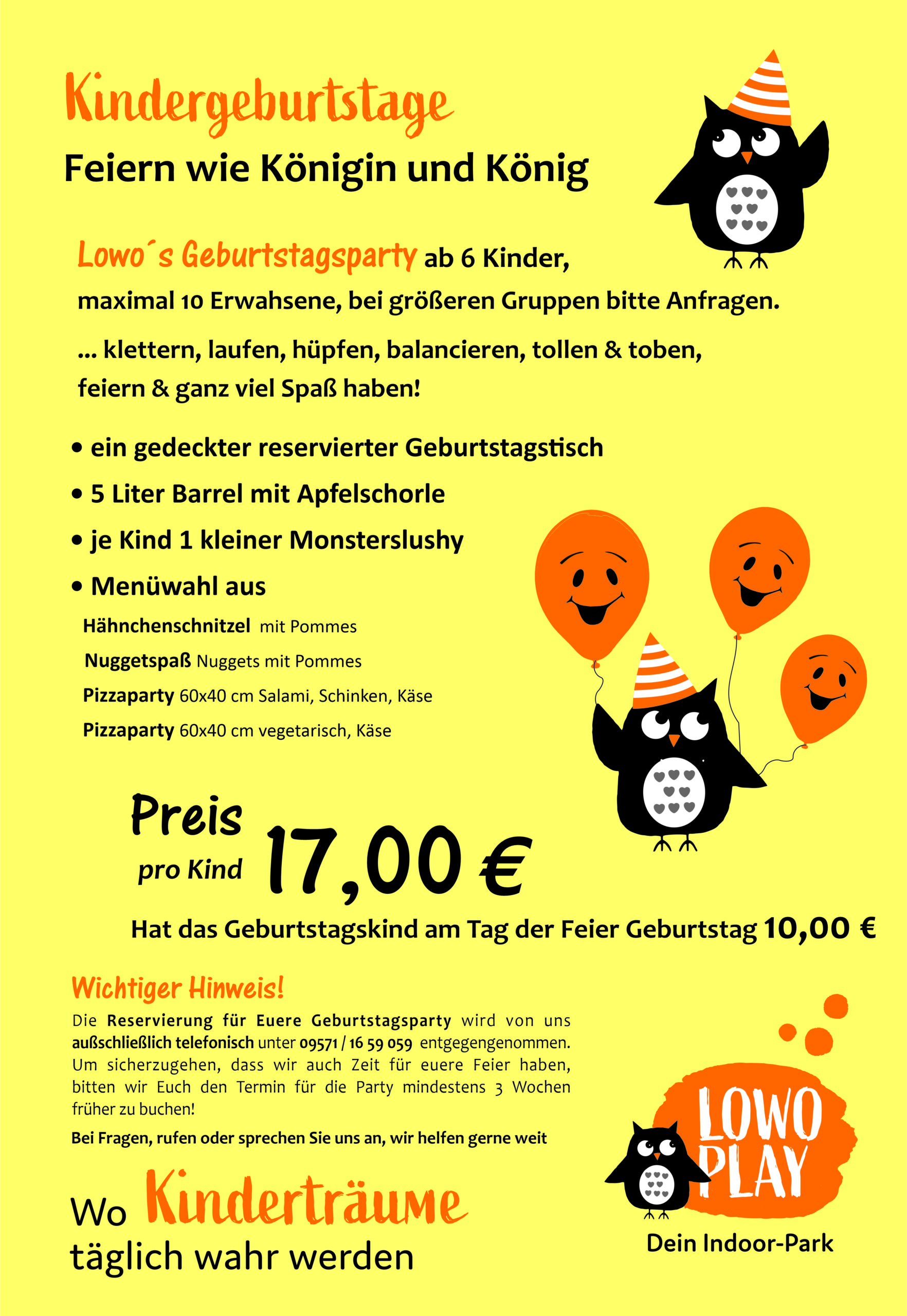 Hat Ihr Kind an dem Tag an dem es feiert Geburtstag, zahlen Sie für das Geburtstagskind nur 10,00 € (Nachweis erforderlich).